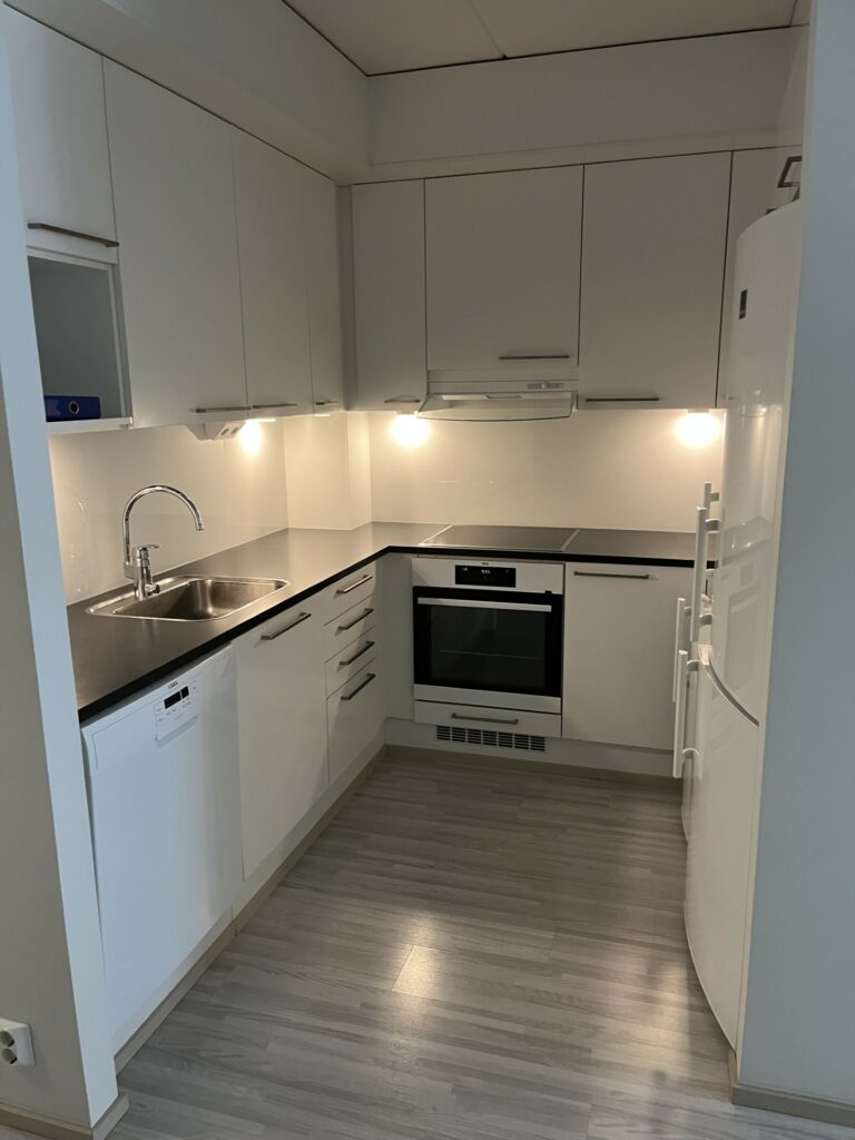 Keittiö | Keraaminen liesi, Jääkaappi/pakastin, Liesituuletin, Astianpesukone |